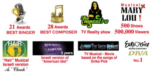 Svika Pick has written masses of songs and music for movies and TV. He stars in his own reality TV show, "The Maestro", and was a respected Head Judge in the local version of American Idol. "Mary-Lou", a musical based on Svika Picks's song was put on by the National Theatre and was an instant hit - a complete sell out with well over 500 performances, and over half a million viewers to date.